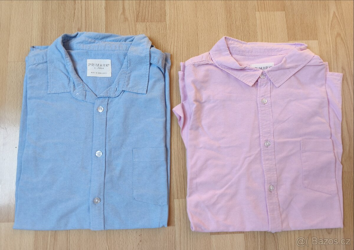 Dvě nové košile z Primarku. Modrá délka 75 cm, šířka 59 cm. Růžová délka 73 cm, šířka 62 cm. Cena za obě.