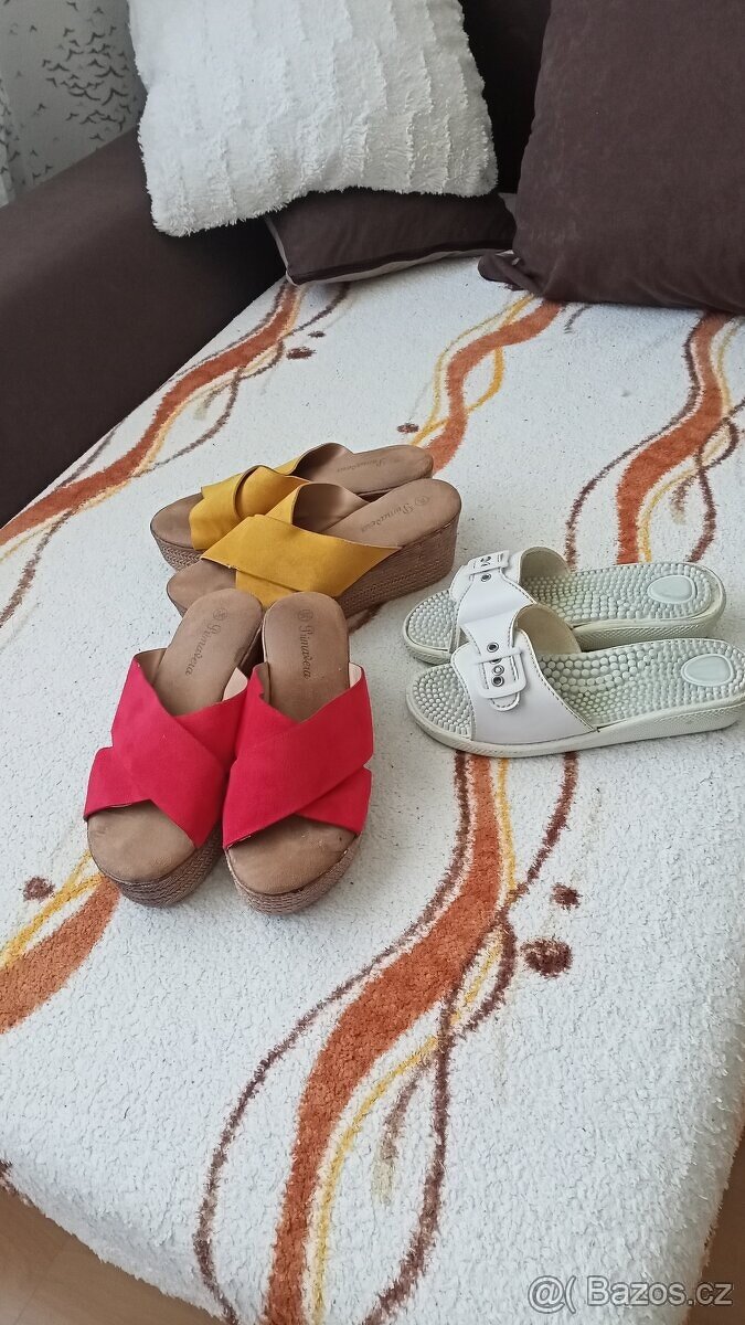 dámské nazouváky, pantofle vel.36, pohodlné, potpatek 7cm. Cena 280,-/pár. Bílé zdravotní vel.36 za 100,-kč.