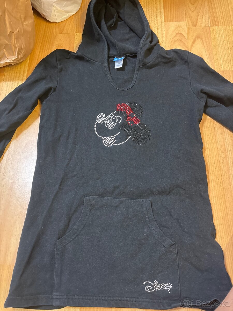 Delší mikina s Minnie, s klokani kapsou a kapucí, velik. 164,stav v pořádku.