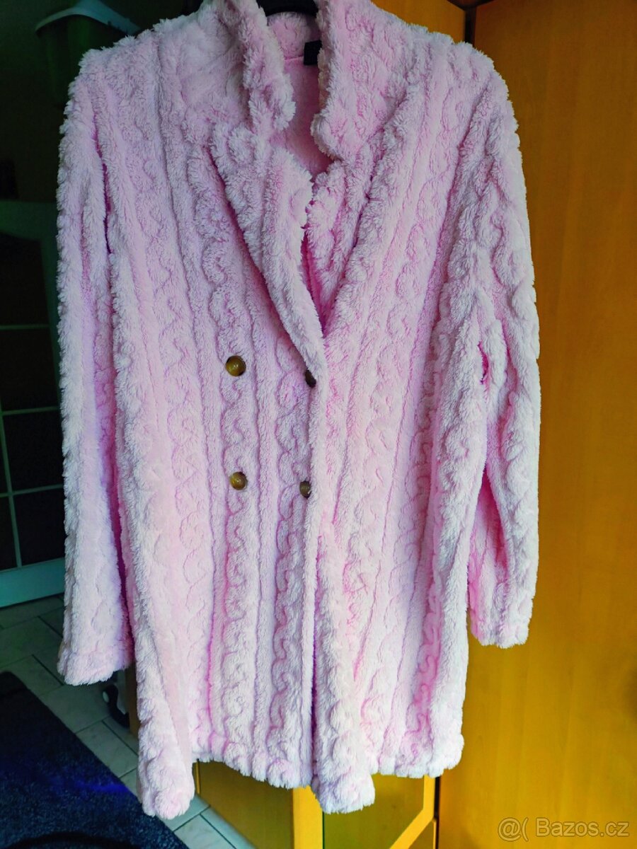Prodám plyšový kabátek viz foto, nový. Délka cca 88 cm, boky cca 126 cm, hrudník cca 122 cm.