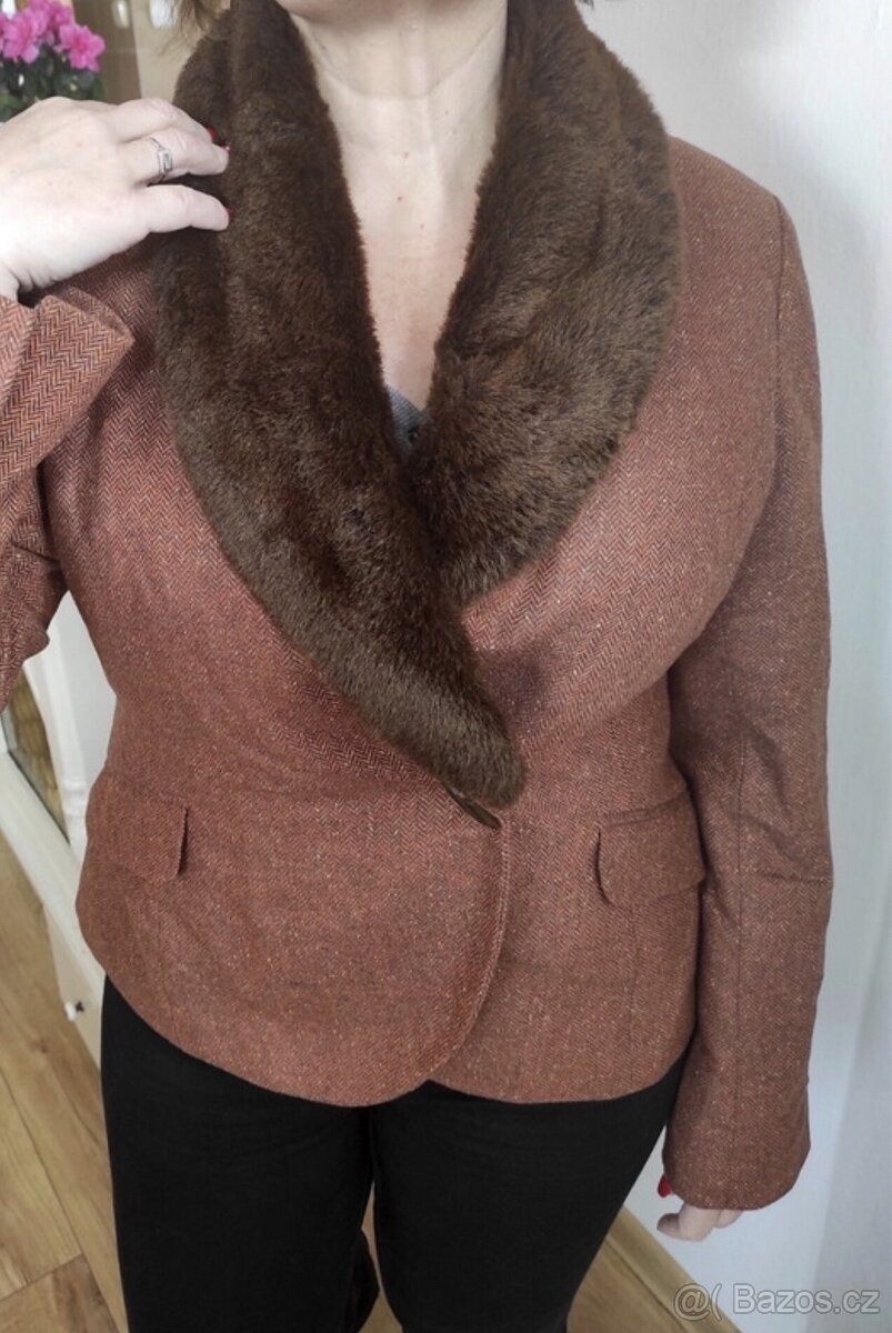 Velmi prijemne Sacko /kabatek s odnimatelnym kozesinkovym limcem H&M vel.44/46 kdy prsa meri 2x56,pas2x54,boky2x58,delka 62cm-krásný stav-270kc