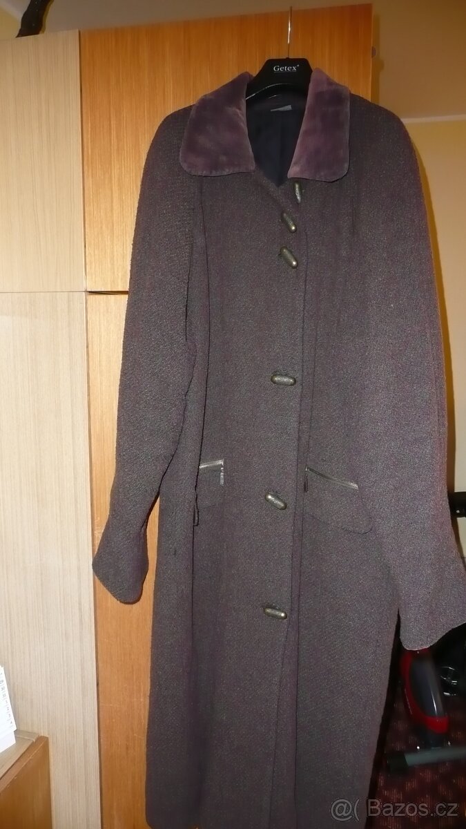 Prodám nový -nenošený-dámský kabát- materiál kvalitní krul-šitý na zakázku.Zajímavý střih. Pěkný. Vel.cca 45-48.