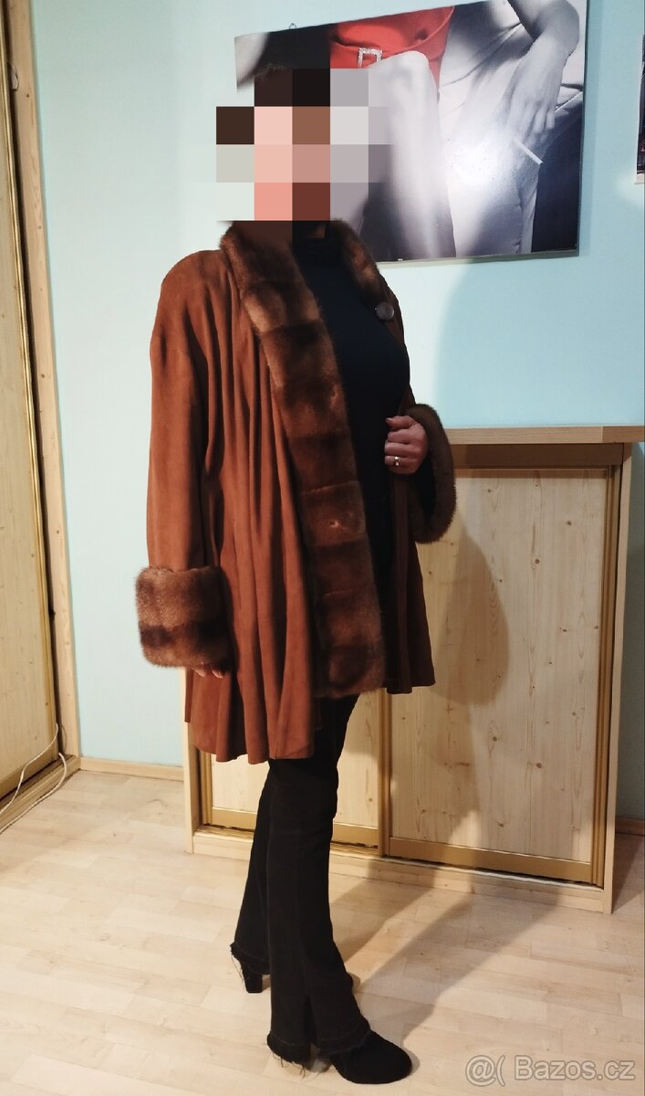 Krásný suede kožich/přehoz s lemy z norka. Neopakovatelný elegantní kousek. Velikost 38-42. Krásný stav.