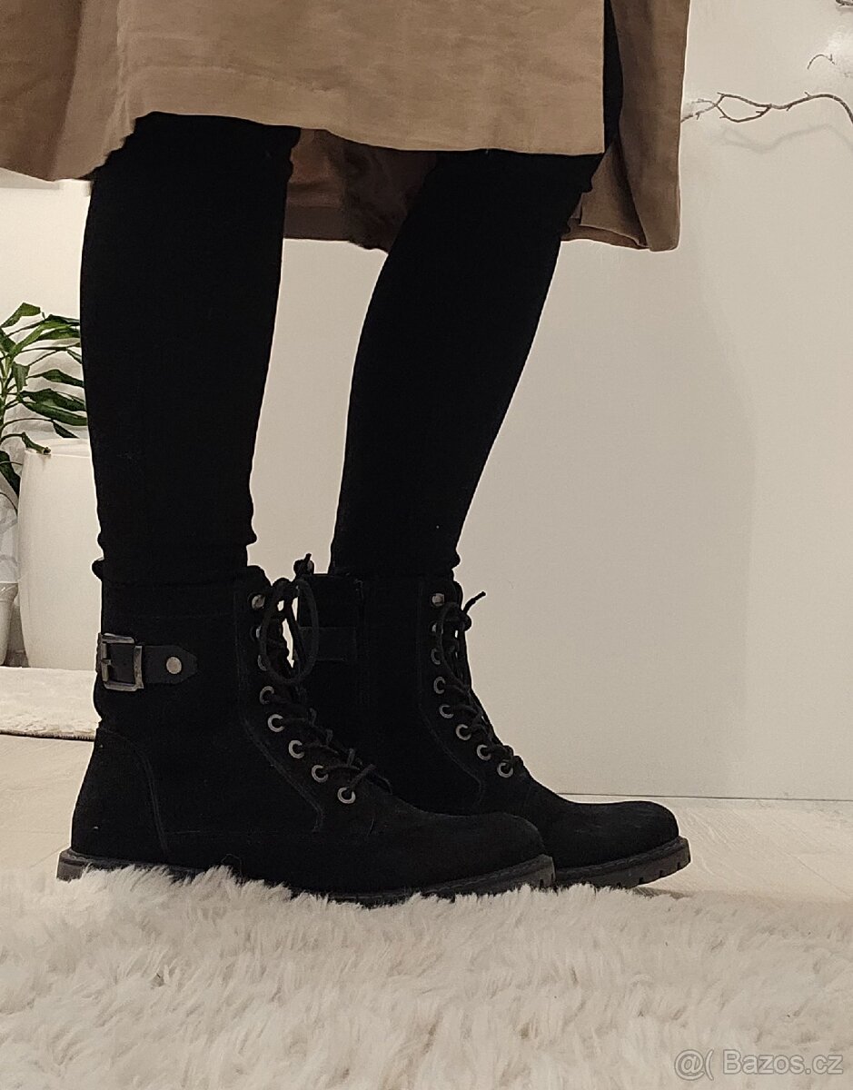 Semišové provedení, moderní design se šněrováním a přezkou. Jsou perfektní na podzim i jaro – pohodlné a univerzální. Nošené jen dvakrát.
