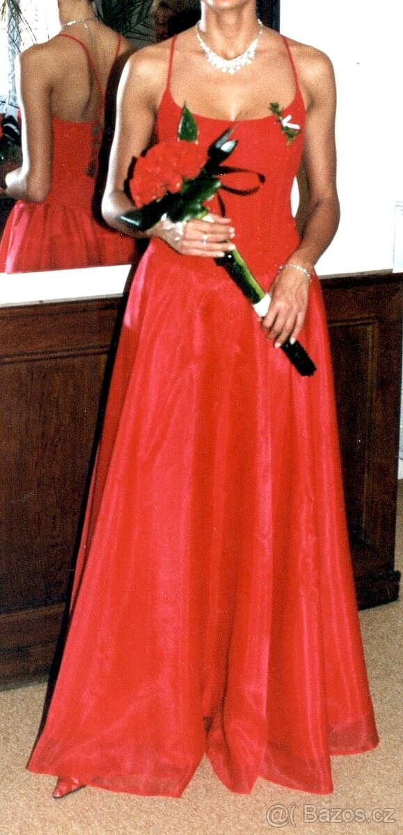 Dlouhé červené šaty vel. S - večerní plesové šaty vhodné i jako svatební nebo pro tanečnice na standardní tance.