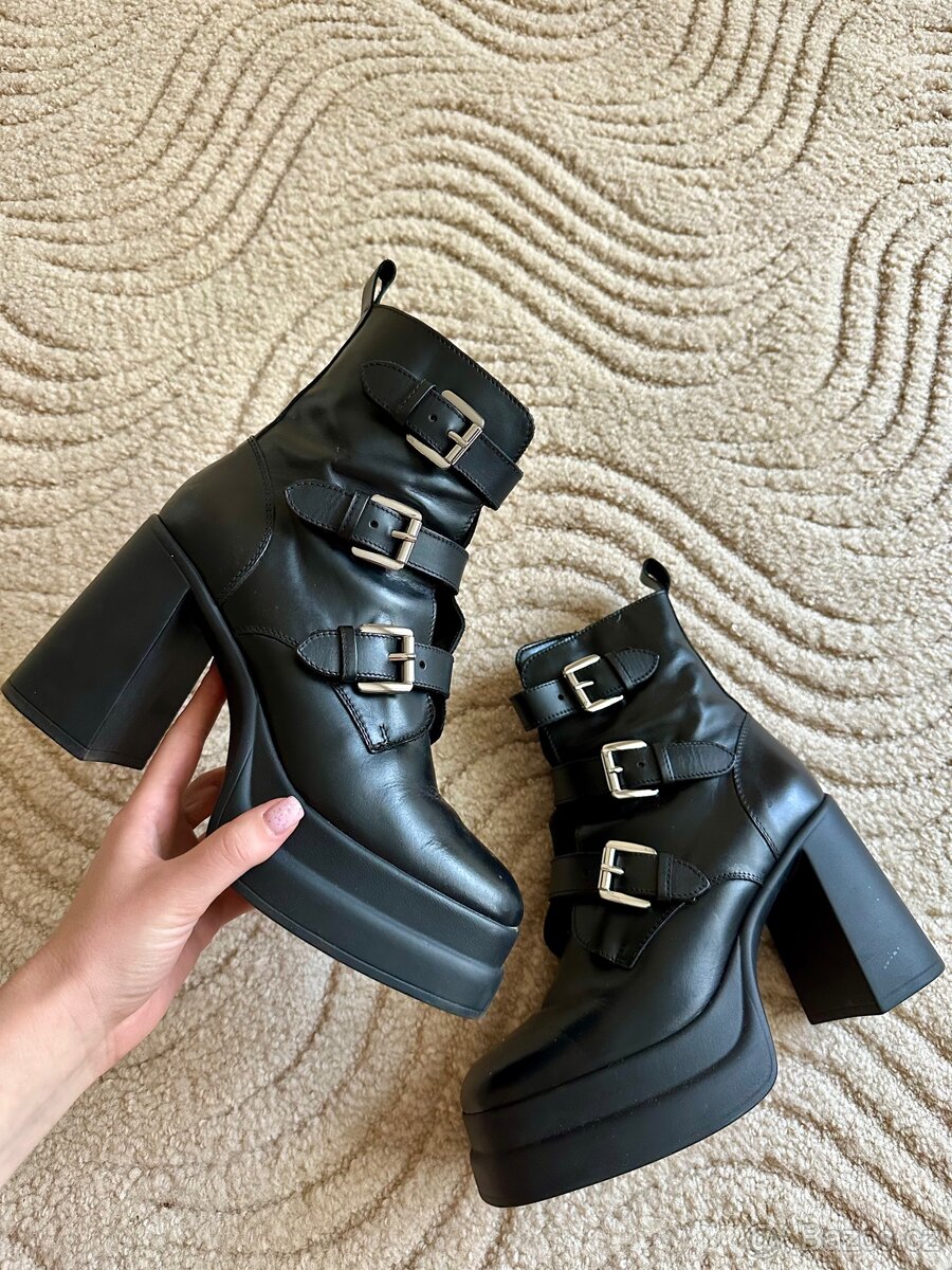 Pouze 2x na sobě, stav naprosto skvělý. Velmi kvalitní zpracování. Strašně pohodlné. Celokožený materiál. Zapínání na zip. Délka stélky 23,5 cm. PC 3400 Kč.