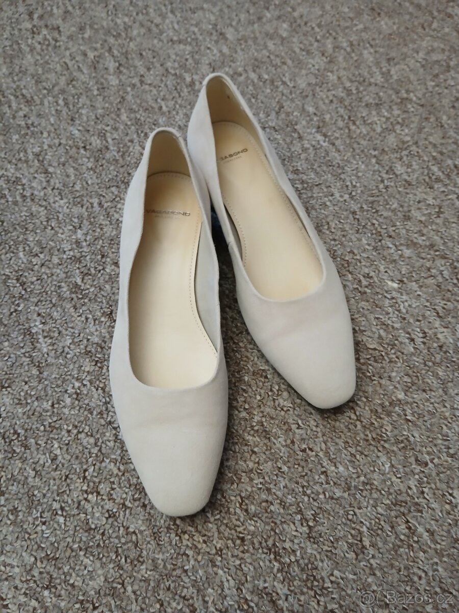 Nové,jednou nošené béžové semišové boty na nízkém podpatku, původní cena 2.399,- Kč