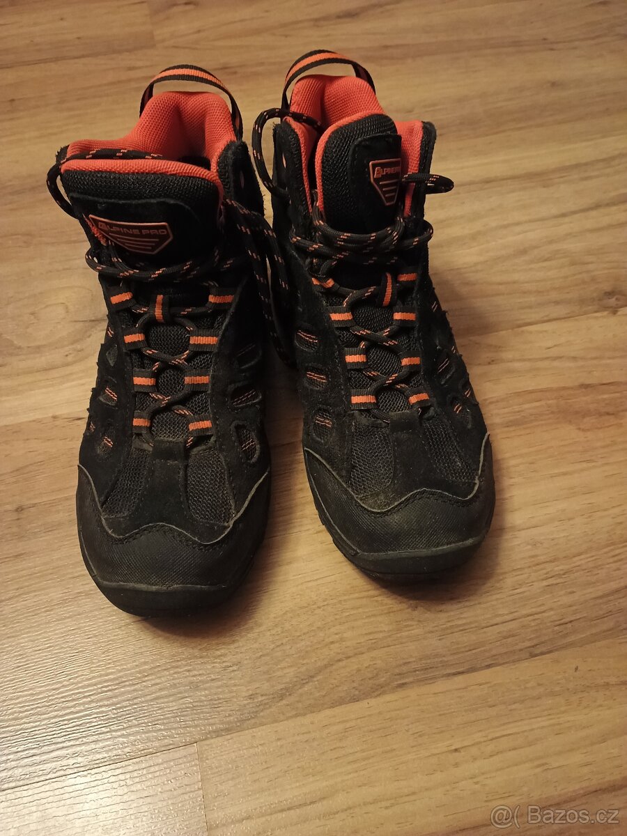 Prodám 2x obuté (skoro nové) trekové boty Alpine Pro, velikost 37. Bohužel dcera nenosila. Podrážka Vibram, naimpregnované.