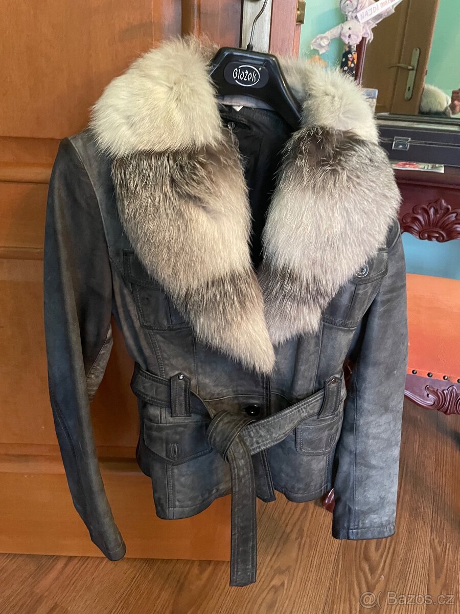 Kožené sako Kara vel.36 s kožešinovým límcem - [16.3. 2026]Sako je projmuté,koupené bez kožešiny,přišila jsem na něj knoflíčky,na kožešině jsou poutka,samotné sako stálo přes 4000,-,kožešina je liška,cena 2.400,-dohromady