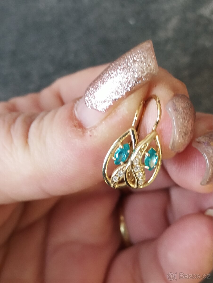 Zlaté náušnice s kamínky, žluté zlato 585. Uvítám osobní předání, na dobírku a kurýrem neposílám. Náušnice jsou řádně puncovány z českého zlatnictví.