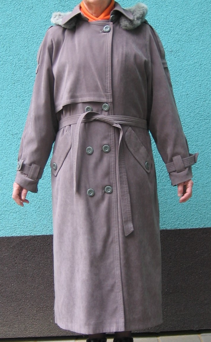 Velikost asi XL (délka kabátu od ramen dolů 133 cm, obvod v pase 140 cm, délka rukávu 68 cm).