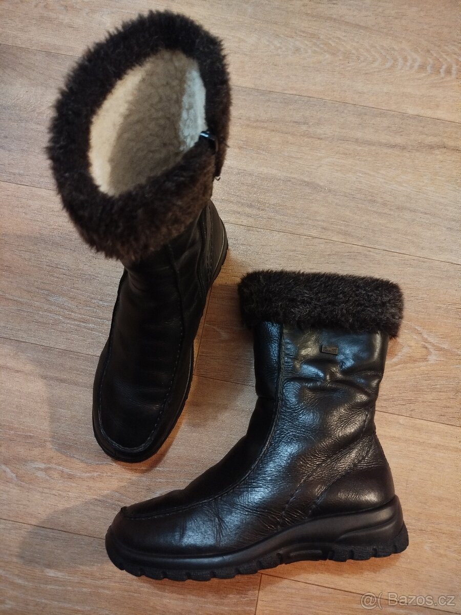 Zimní boty Rieker, velikost 37, délka stélky je 23,5cm. Zateplené beránkem. Uvnitř mají pár známek nošení, ale zvenku jsou stále moc pěkné. Mají nové ortopedické vložky.