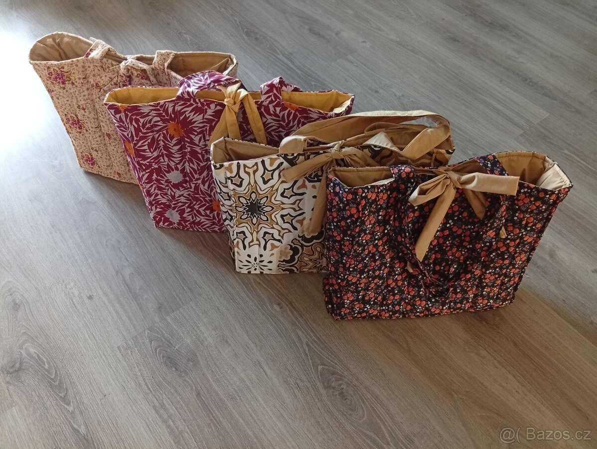 Kabelka/látková taška....vyztužená, prošitá..na zavázání - mašli... Rozměr 50*33 cm,hloubka 12 cm....dostatečně dlouhé ucho..lze nosit přes rameno