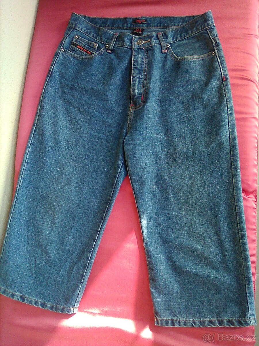 Prodám tříčtvrteční džíny HANG TEN URBAN TREND, 100% bavlna. Velikost 32, délka přední části 74cm, zadní 80cm, vnitřní část nohavic 46cm. Obvod pasu 86cm, boků 100cm, horní části nohavic 56cm, dolní 46cm.