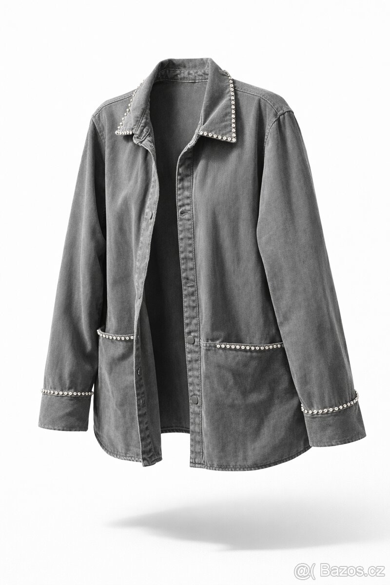 Prodám stylovou dámskou bundičku ZARA v moderním, sportovně-elegantním stylu. Šedá barva je doplněna jemným zdobením kamínky na límci, kapsách i rukávech, které dodává bundičce elegantní a originální vzhled.