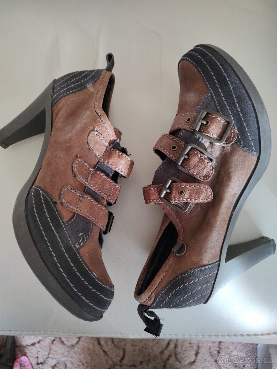 Zajímavé kožené lodičky na vnitřní platformě.