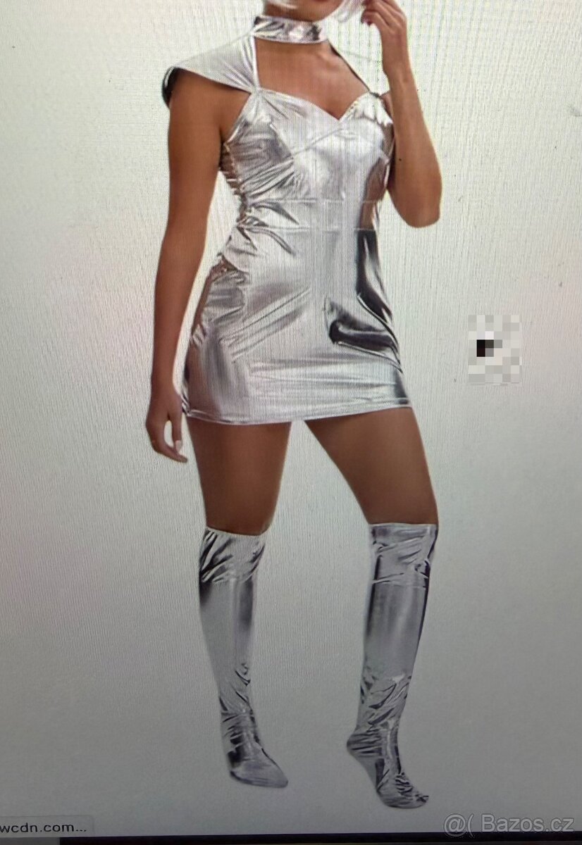 Nadherne saty kostym na akci nebo maskarni nebo stylovky na cokoli. Koupila jsem je - jsou uplne nove ale jsem na ne moc dlouha, je potreba mit vysku do 165-169cm ( ptz ja je mam pri 173cm uplne tesne pod zadek a uz se ani nehnu natoz abych se v nich predklonila ). Rozmerove sedi na cca prsa 90-92( klidne i vic )cm, pas 70 ( take maji vuli plus cca 4cm ), boky kolem 90cm ( take plus cca 3cm ale vyskove nesmite mit pres 170cm aby z toho nelezlo to co nema . Je k nim i takova jakoby ,,bota” - spis teda ponožky nad kóema. Latka je lame, hazi super odlesky a dela proste wau efekt. Cena 850Kč