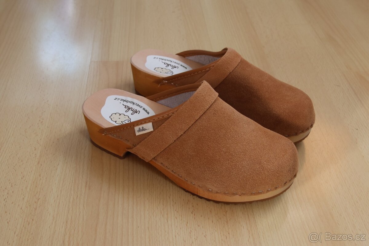 Prodám nové dámské anatomické dřeváky broušená kůže hnědá č. 39, nenošené. https://www.oveckarna.cz/damske-anatomicke-drevaky-brousena-kuze-hneda_z5598/