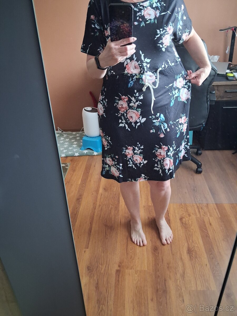 Dámské květované šaty velikost L - [20.4. 2026]Dámské asi jedenkrát použité květované šaty, nepoškozené značky Estee brown. Elastické, v pase s gumou, velikost L.