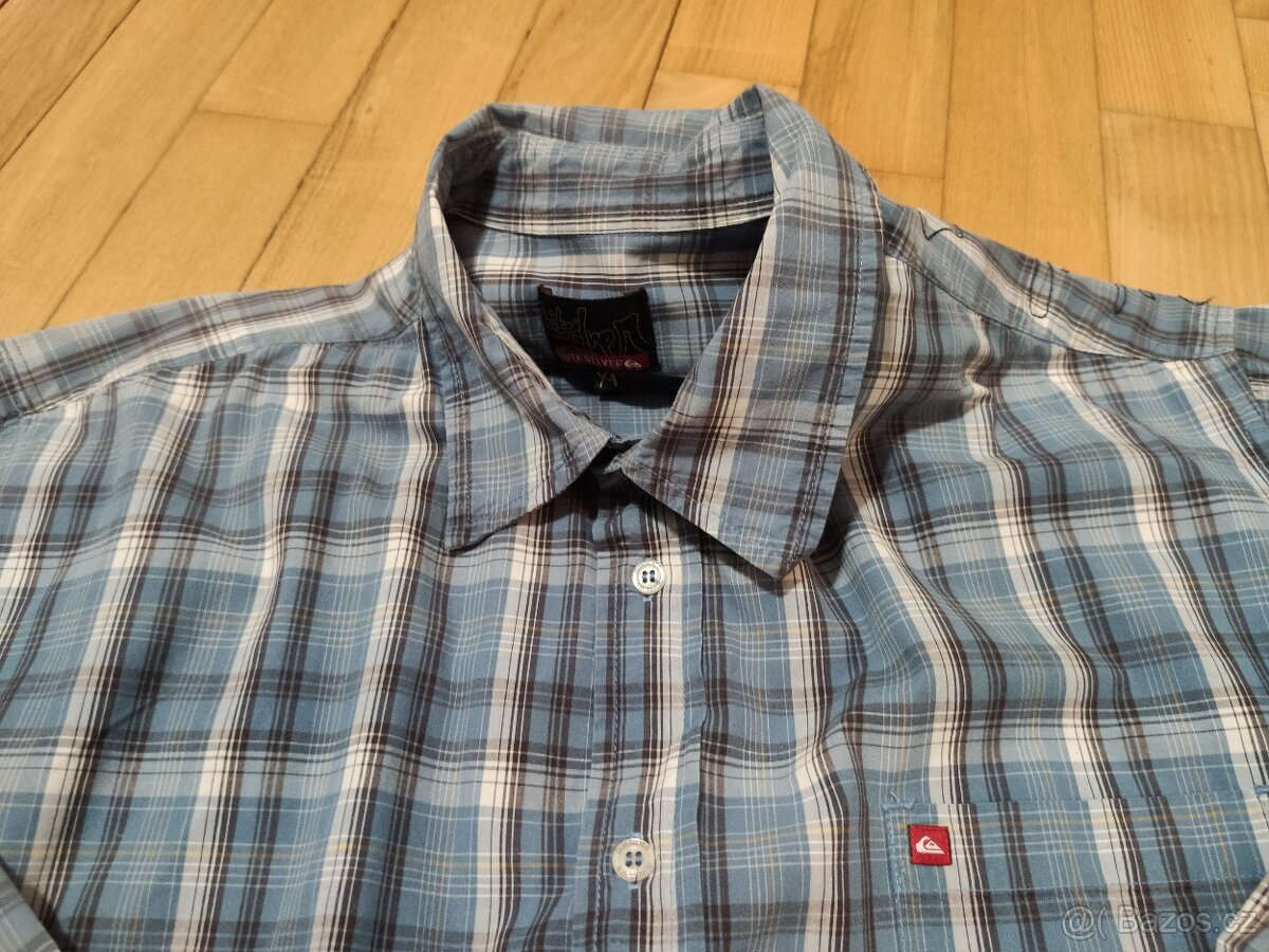 Málo nošená, kvalitní příjemná bavlna, pevné švy. Přední strana kapsa s logem značky. Na zádech - na jednom rameni vyšité logo. Barva světlejší odstín modré, kostička bílo černá. Zastřenější odstín. Neošoupaná, pěkně vypracovaná. Pravé rameno s rukávem lehké vyšisovaní ze skříně. Ve vzoru košile se to ztrácí. Velikost L až XL. Rozměry ramena 48 cm, přes prsa 60, celková délka 71 , rukáv 65 . Zakoupeno v zahraničí. Osobní odběr v Praze 6 jinak zasilkovna za 60 Kč