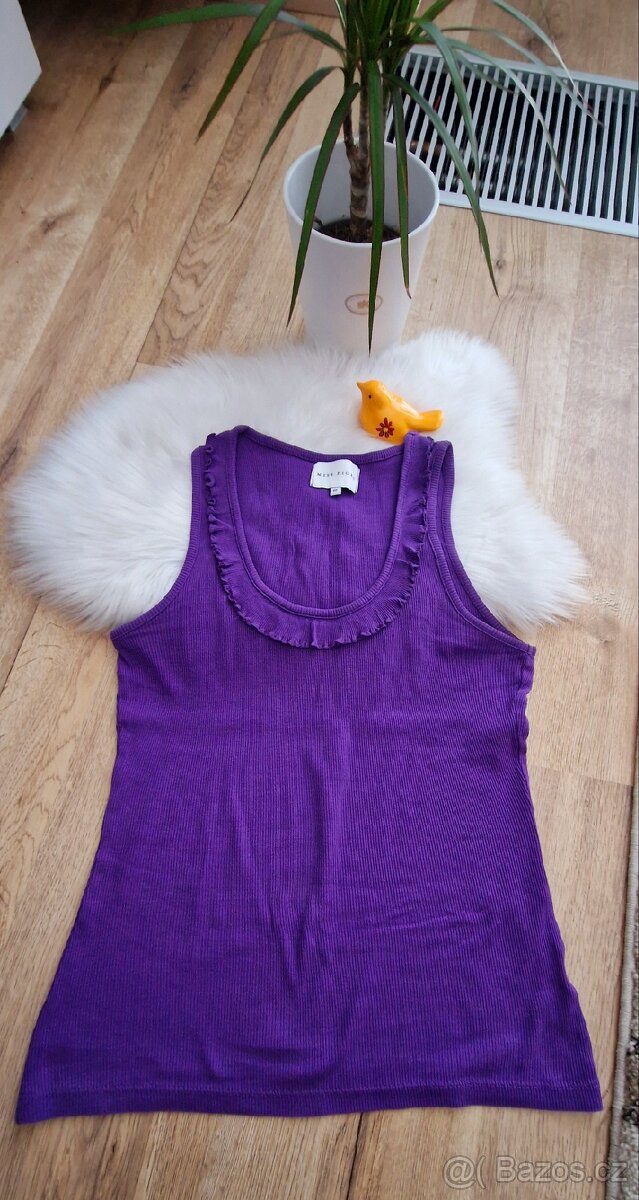 Fialové tílko s volánky, jako nové. Zn. MISS FIORI. Vel. M. Celková délka-59 cm, přes prsa-42 cm. Balíkovna 75 Kč.