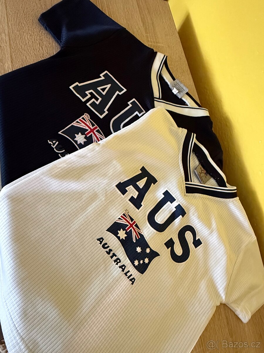 Fotbalový dres, jersey, Austrálie, 6 let, 4 roky, tmavě modrý, bílý, nošený minimálně, polyester,