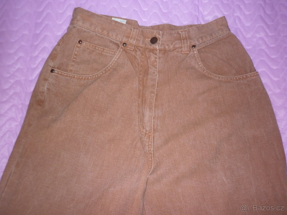 Dámské plátěné džíny,pískové barvy.Made in Srí Lanka.Pas 72cm,délka 106cm.Pěkné, málo nošené.Osomně,nebo zásilkovnou
