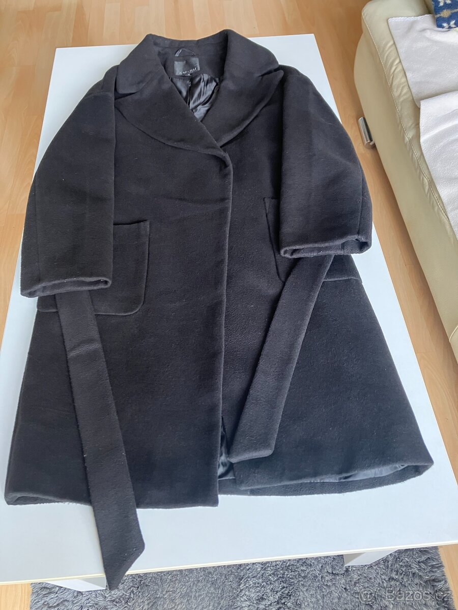 Prodám černý kabát 82% polyester,12% viskóza, 5% vlna. Vel: 36-38. velmi dobrý stav.