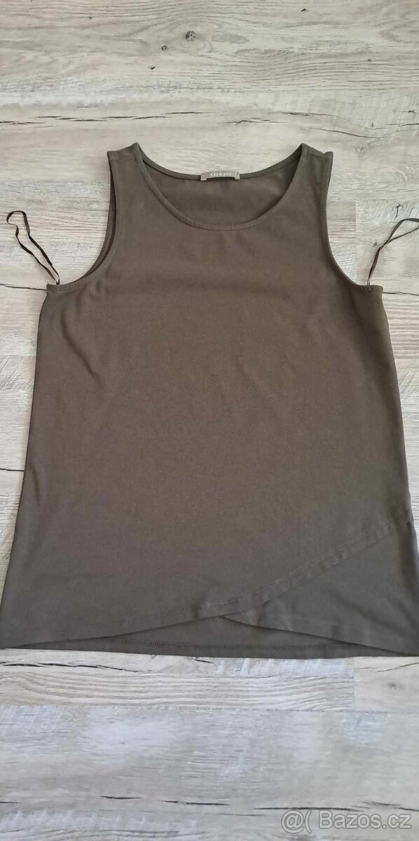 Nabízím jednou nošený top v khaki barvě. Obvod hrudníku 41x2cm. Pružné. Zn. Orsay.
