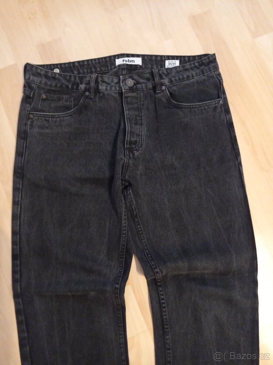 Prodávám po synovi černé džíny, málo nošené, dobrý stav, značka fsbn, velikost 34/34