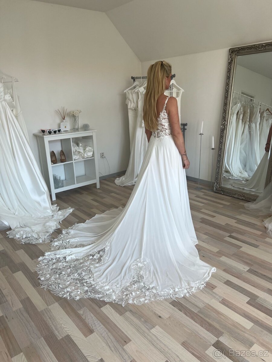 Svatební šaty Vetta by Blammo-Biamo vel 36 - [25.4. 2026]Prodám vyčištěné svatební šaty Vetta ve skvělém stavu z nádherného a kvalitního materiálu. Součástí je vlečka, která se dá připnout. Kupovala jsem je ve svatebním salonu White Day Prague.