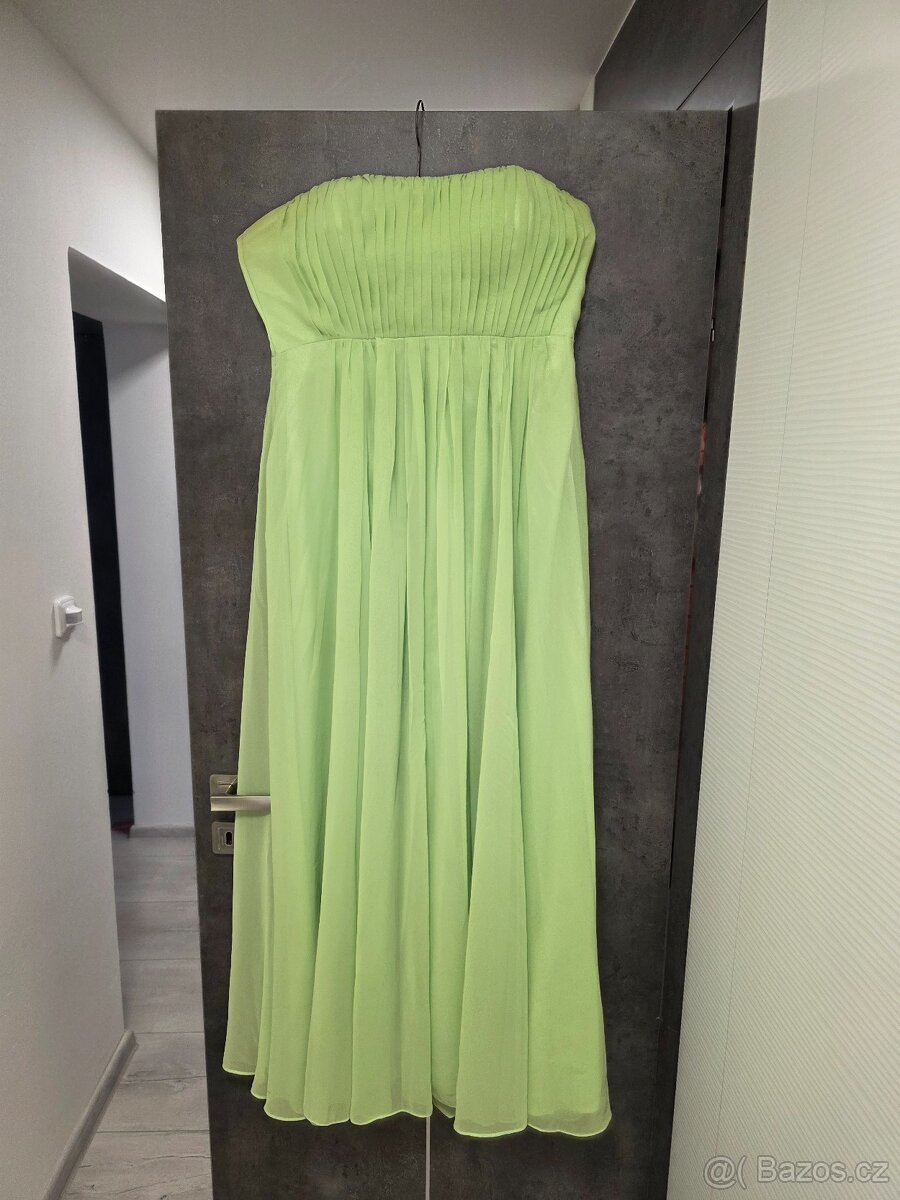 Prodám plesové šaty,při podtavě 172 cm sahají téměř k zemi, krásná zelenkavá barva, cena 300,-