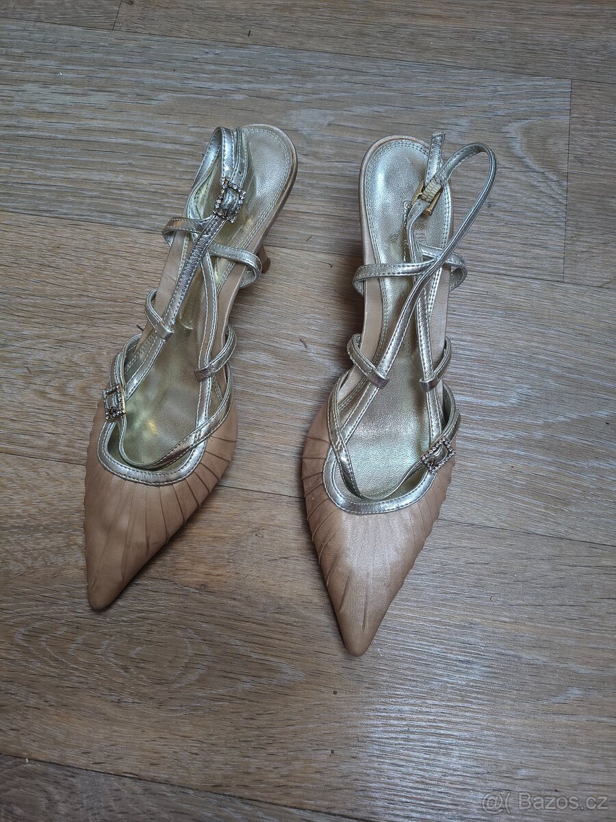 dámské zlaté páskové boty vel. 37 - [31.3. 2026]Prodám dámské zlaté páskové společenské boty vel. 37 na vysokém podpatku 7 cm.