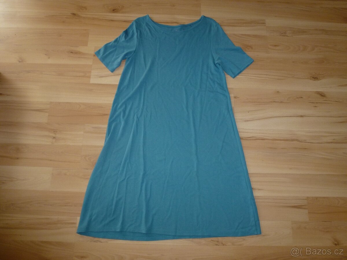 Modré šaty C&A, vel.M, délka od ramene dolů 101cm, mezi podpaždími 2x 47cm.