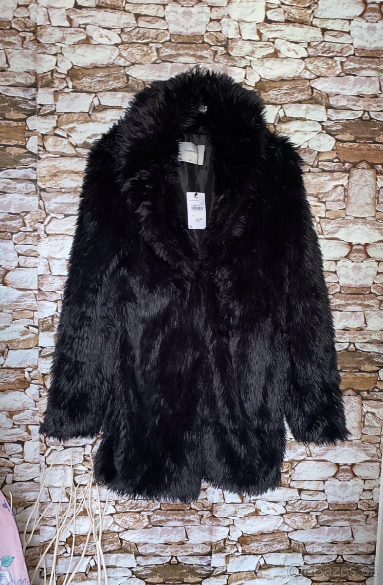 Černý kožich s dlouhým chlupem,zapínání na cvoky