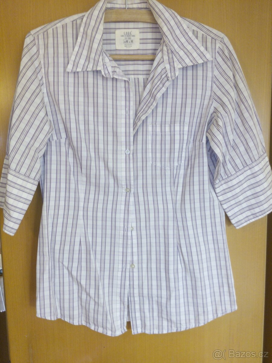 Dámská proužkovaná košile vel. 42 - [24.4. 2026]Prodám dámskou košili s proužky vel. 42, rozměry: šíře ramen 39cm, přes prsa 57cnm v pasu 60cm, lem na bocích 69cm, délka košile je 79cm, délka rukávu 62, šíře rukávu u ramene 20 u zápěstí 12cm. Košile je střižena do A, má límeček, rozhalenku, sámky ...