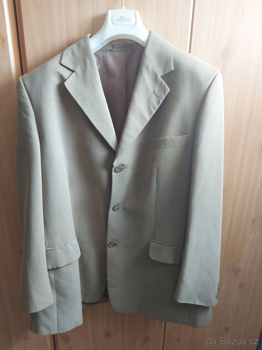 Pánské hnědé sako Perry Ellis (M), kalhoty Cacharel(M) - [23.4. 2026]Lze koupit jako celek, ale i jednotlivě.