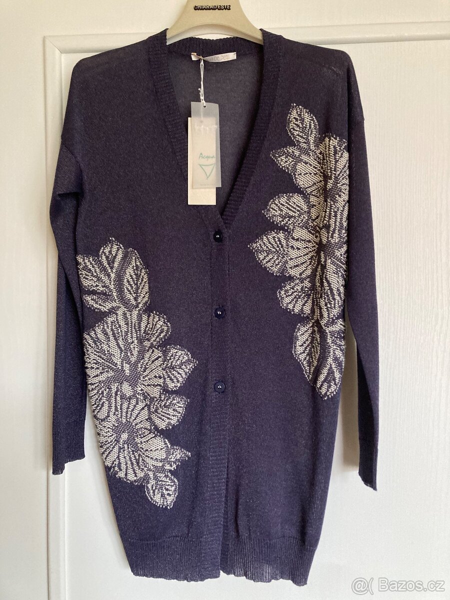Nová, tmavě fialová vesta ital. zn. Donatella De Paoli, v předu vyšívání, vel. 36/38/M, délka 75 cm.
