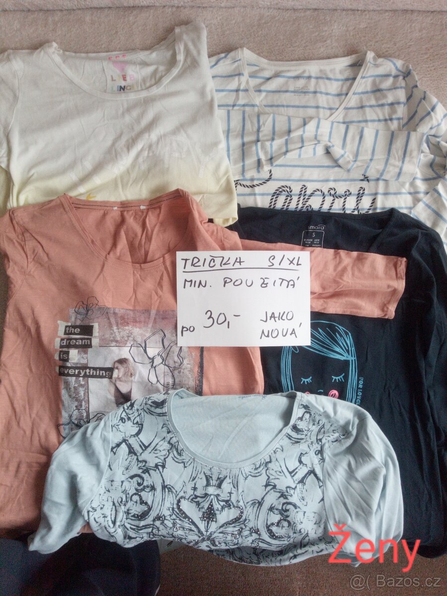 trička, tílka, topy - [24.3. 2026]Prodám dámská trička velikostí S, M.