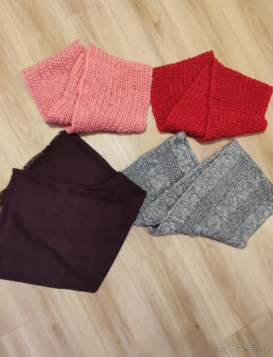 Prodávám v dobrém stavu pletené šály + bavlněnou šálu (hnědou). Možný osobní odběr v Praze 5, 13 nebo zásilkovna/balíkovna.
