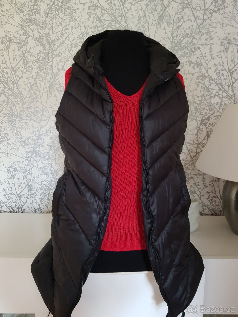Vesta černá zn.MOODO, prošivaná s kapucí, boční kapsy na uzávěr vzadu delší, velikost M TOP STAV!!!