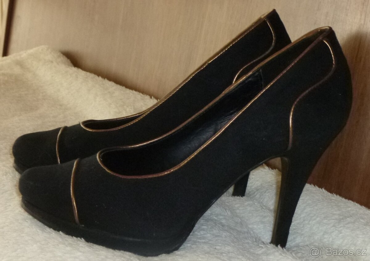 PĚKNÉ ČERNÉ LODIČKY ZDOBENÉ ZLATEM.................MINIMÁLNĚ NOŠENÉ...............zn.GRACELAND..................délka stélky 25cm