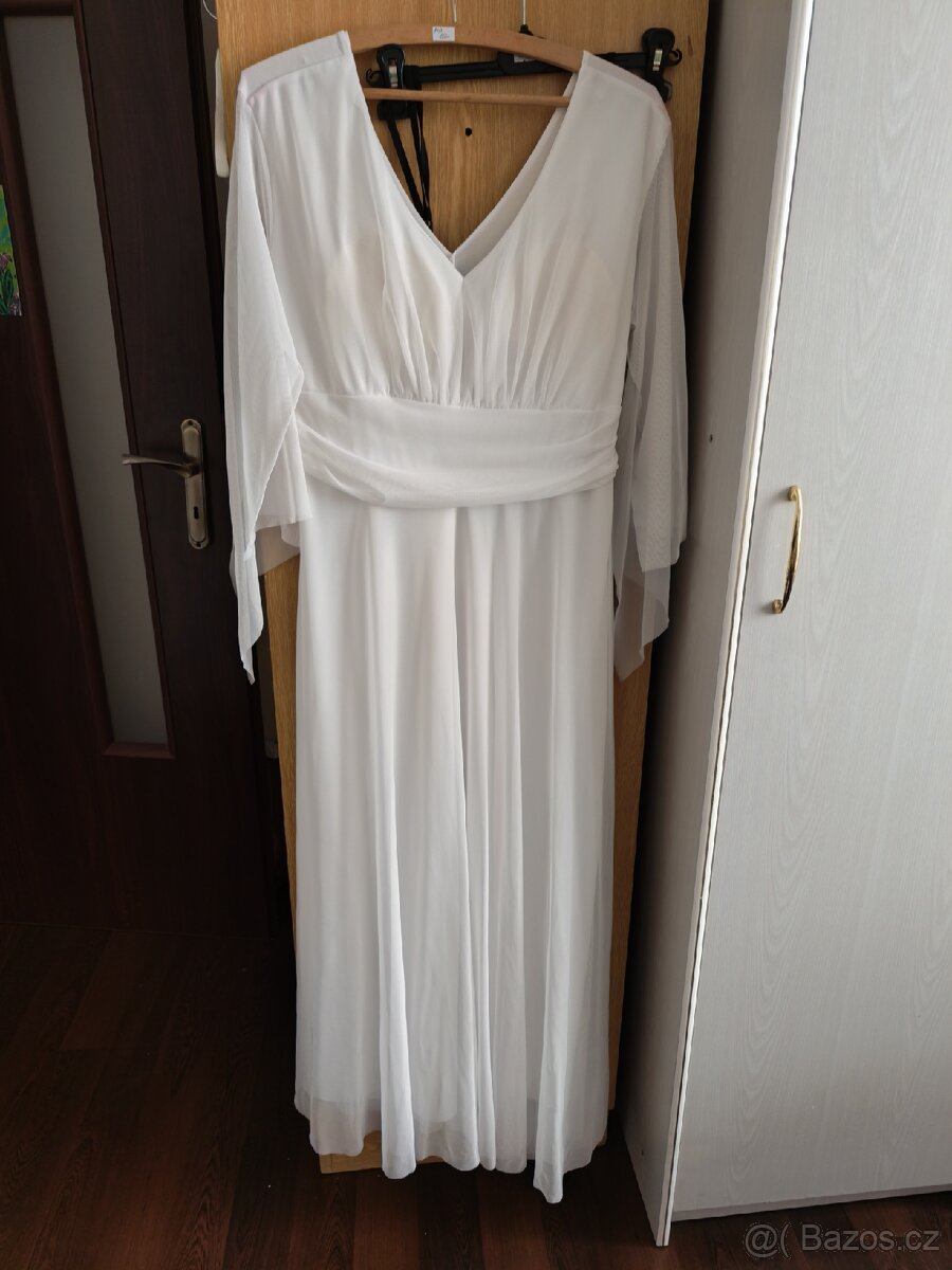 Svatební/společenské šaty vel. M. - [24.3. 2026]Svatební šaty v módní meruňkové barvě, přes prsa 2x50 cm.