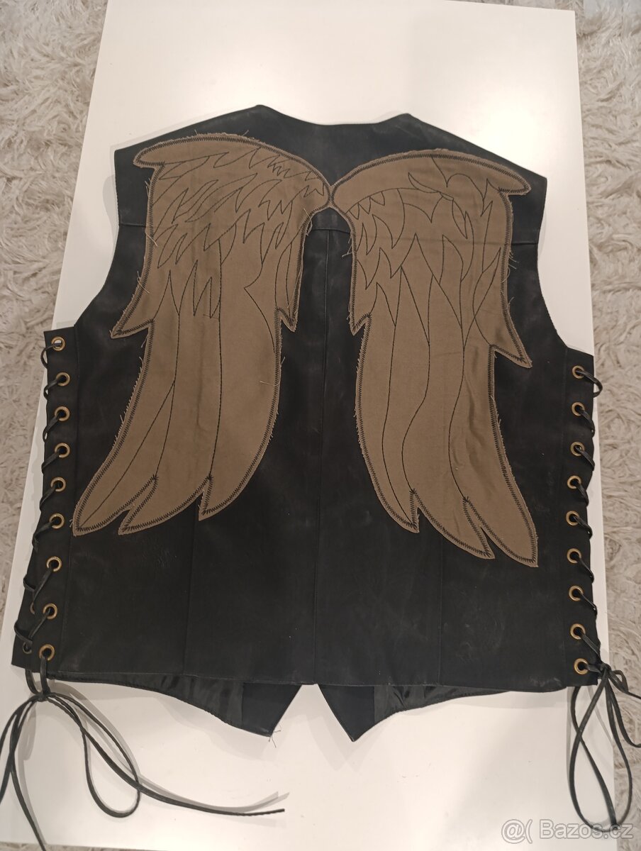Tato nová nepoužitá černá kožená vesta se vyznačuje jedinečnými andělskými křídly, která nabízí stylový a výjimečný vzhled pro fanoušky The Walking Dead, díky čemuž je perfektní volbou pro cosplay nebo běžné nošení velikost (L)