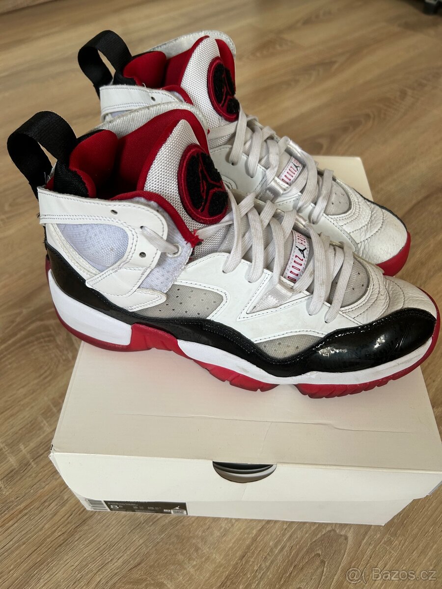 Jordan Super Fly.5 - [24.4. 2026]Prodám basketbalové boty Jordan Super Fly 5 (model Blake Griffin) v černo-červené barvě. Boty jsou lehké, odolné a skvěle drží nohu. Vhodné i na každodenní nošení Nike Air