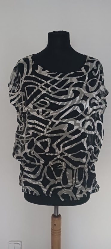 Černobílá halenka z hedvábí v pěkném stavu. Vel. M