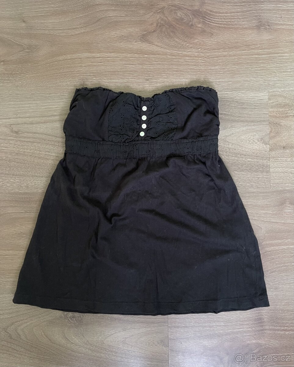 Nošené 1x, jako nové, pod prsy je guma, dámský top bez ramen, velikost S, černá barva