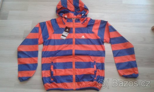 Nova dámska bunda adidas,šustáková,velikost psaná XL,ale spíš odpovída velikosti L,barva modrooranžová,delka 63cm,šířka 52cm,rukav od krku 73cm cena 600kč