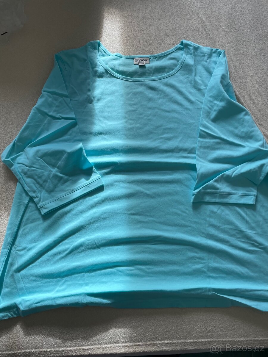 triko s barevnými knoflíky, velikost XS - [25.4. 2026]Prodám modré triko projmutého střihu, rukávy jsou ukončené lemy, lodičkový výstřih, ozdobné barevné knoflíky. Délka 61 cm, prsa v nenataženém stavu 2 x 40 cm, délka rukávu 61 cm. Cena 199 Kč + poštovné, popř. Zásilkovna nebo osobní předání v Poličce. ...