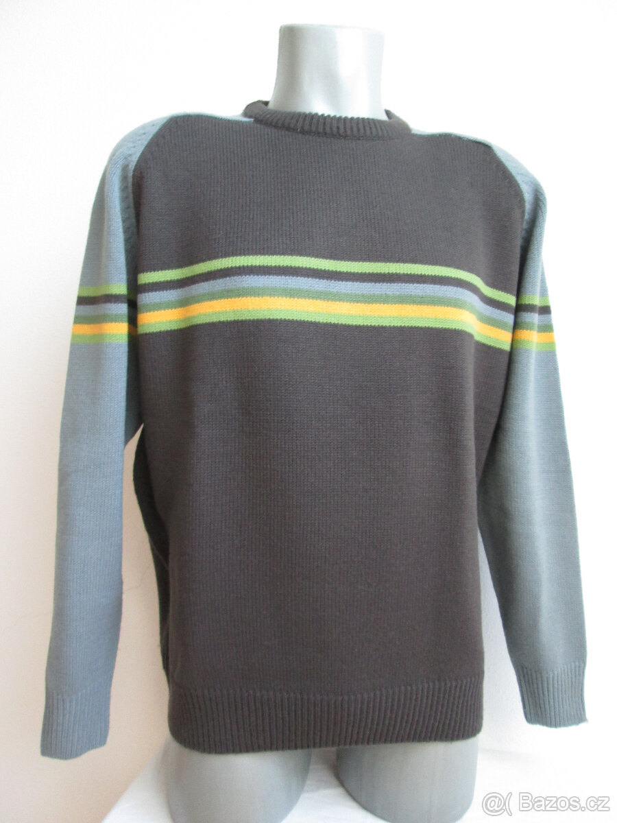 Prodám pánský svetr, vel. L (podle cedulky), materiál akryl, délka těla od ramene cca 67 cm, obvod hrudníku cca 112 cm, délka rukávu od rantlu u krku cca 75 cm, obvod paže cca 35cm, barva antracit(tmavě šedá) se středně šedou, zachovalý, málo nošený.